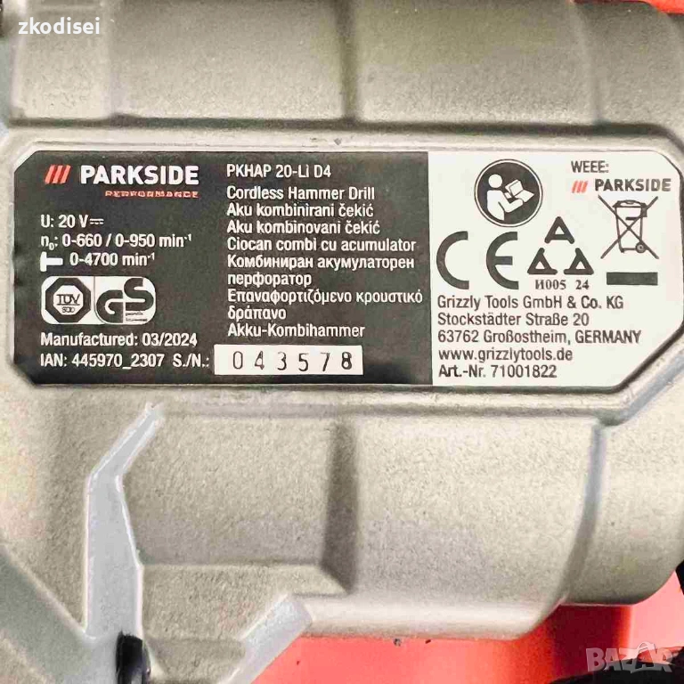 Акумулаторен перфоратор PARKSIDE PKHA → Обява 53694245