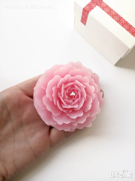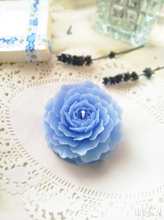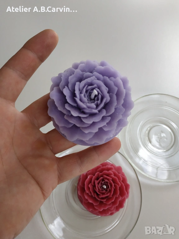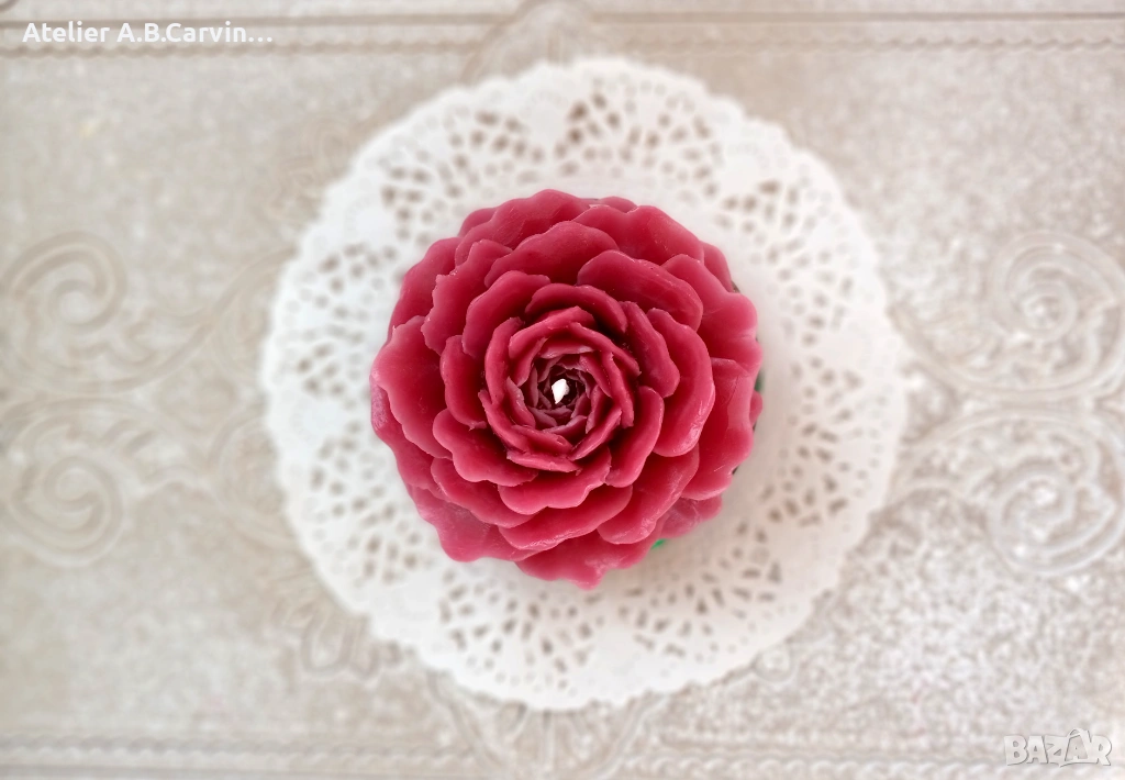 Ръчно гравиран с внимание към детайла, изработен от восък, , стеарин, оцветители и аромати .Свещите горят върху свещник или подложка за безопасност.Комплект от 4 броя декоративни свещи с детайлна форма на разцъфнала роза. Авторски дизайн от Atelier ABCarving. Идеални за луксозен подарък, декорация на събития или флорални аранжировки. Възможност за количества на едро.