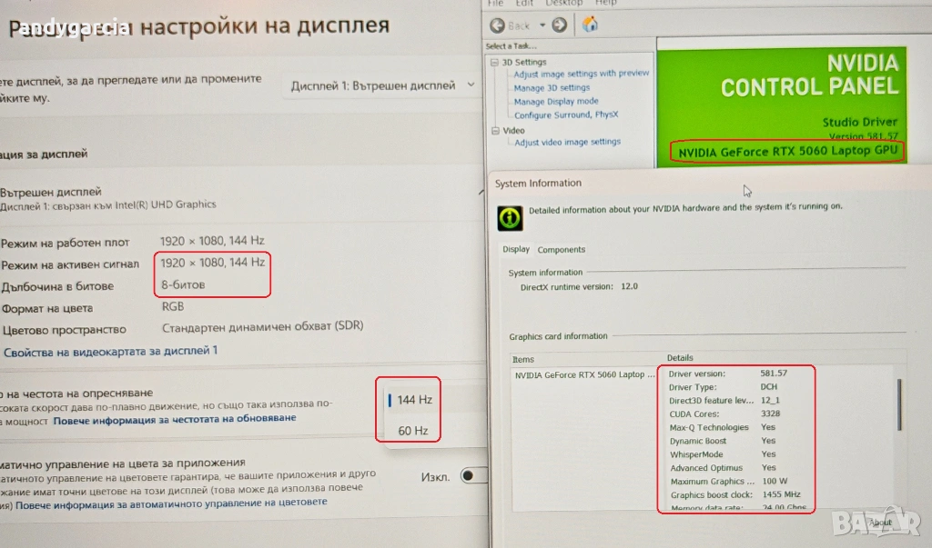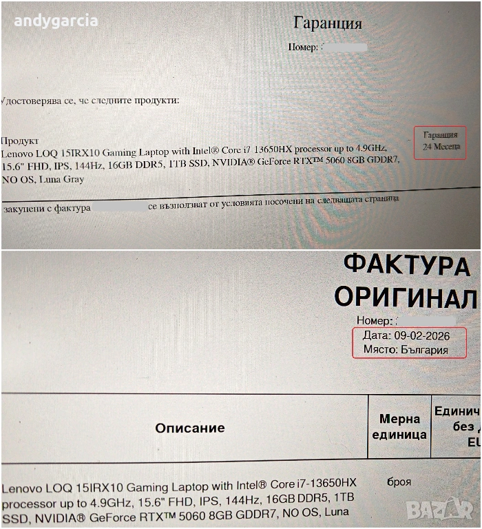 NVidia RTX 5060 8GB/Intel Core i7 13650HX/16GB RAM/1TB SSD NVME/15.6 144hz/Lenovo LOQ НОВ ГАРАНЦИЯ