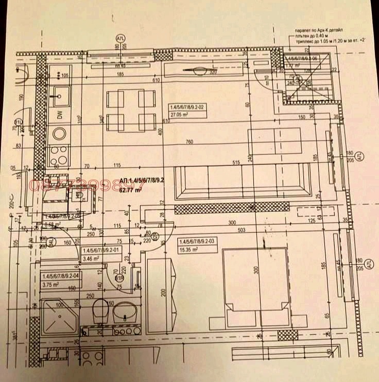 - дневна с кухненски бокс и трапезария с две изложения (27кв.м.)