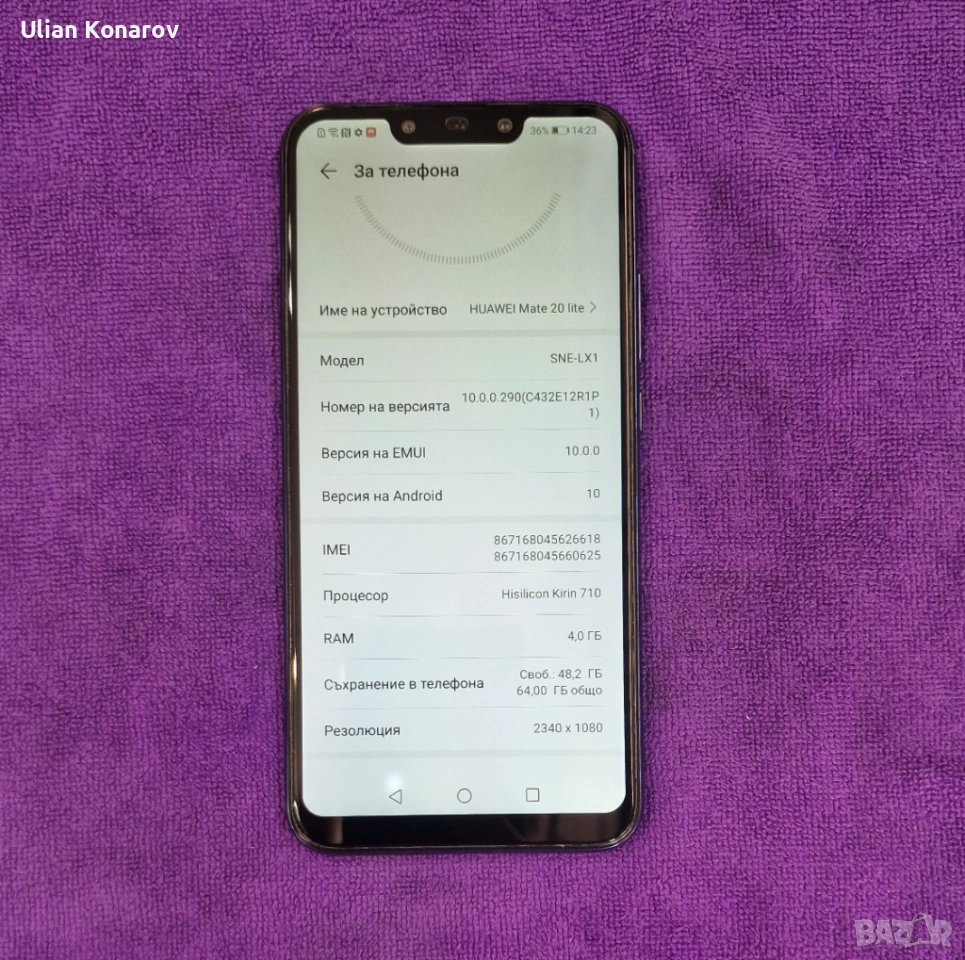 Huawei Mate 20 Lite !! Като Нов !! → Обява 53694557