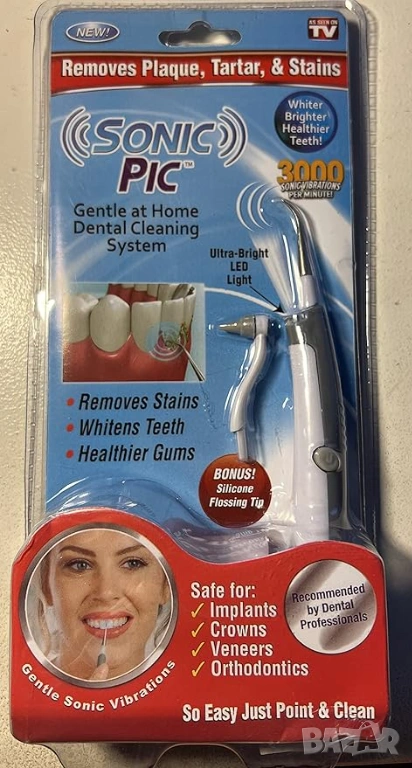 Sonic Pic - професионален уред за почистване на зъби, снимка 1 - Други - 53694663 Sonic Pic - професионален уред за почистване на зъби, снимка 2 - Други - 53694663 Sonic Pic - професионален уред за почистване на зъби, снимка 3 - Други - 53694663 1/3