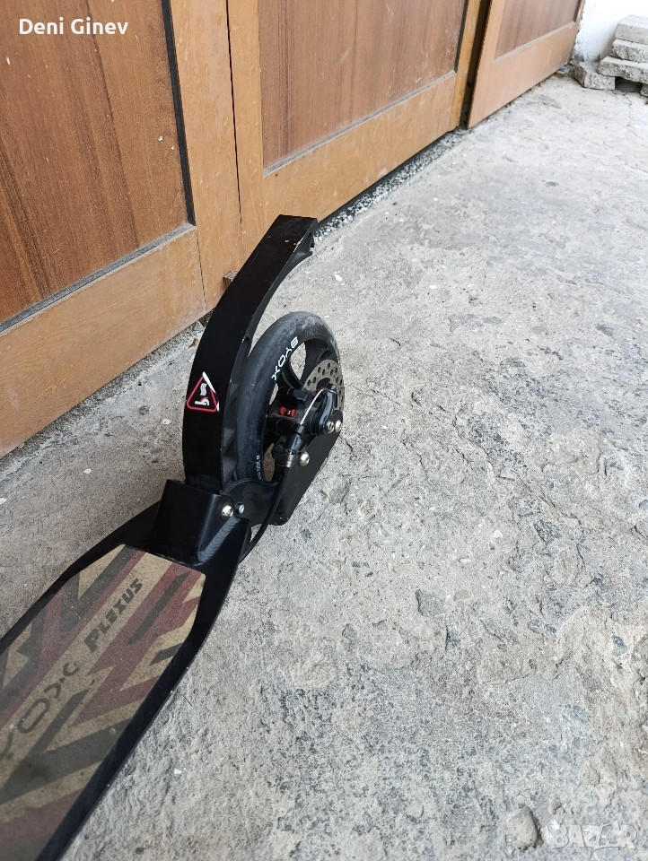 Тротинетката е добро техническо състояние, като и двете спирачките работят перфектно - механизма за сгъване също. Липсва фиксиращия болт на кормилото.