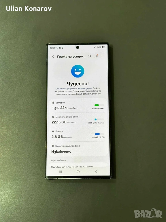 Пазен е изключително, но има леки забележки по страничните лайсни. Технически е перфектен. Черен цвят. Памет 8/256гб