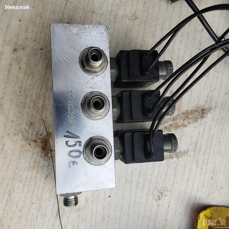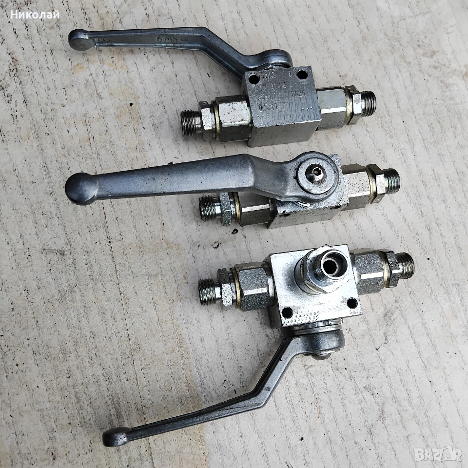 продавам хидравлични компоненти крановете са на 500 бара налягане, електро хидравличните вентили са на 24 волта за повече информация на телефона