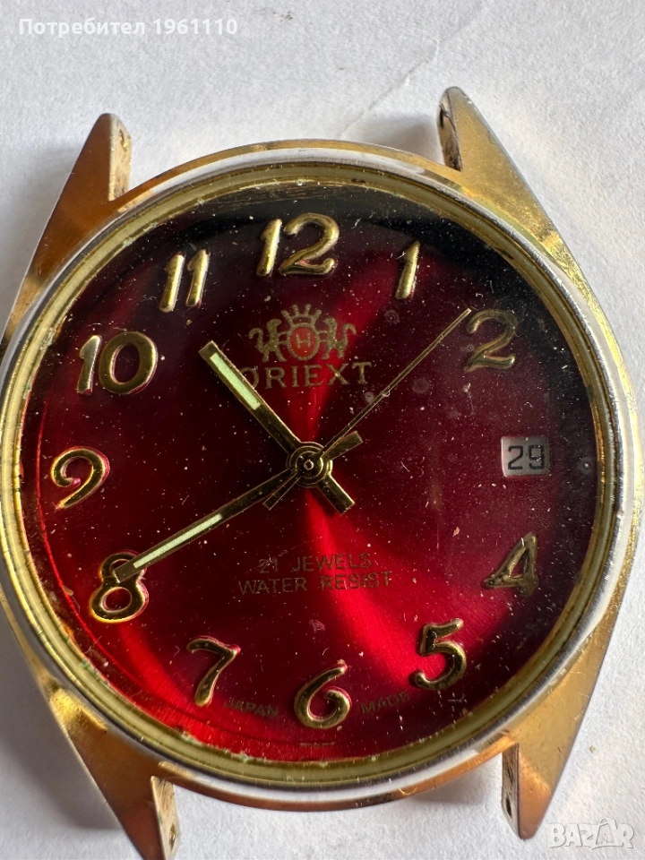 Това е ретро мъжки механичен часовник от марката Oriext, произведен в Хонг Конг през 70-те години на XX век. Не работи. Липсва коронката.