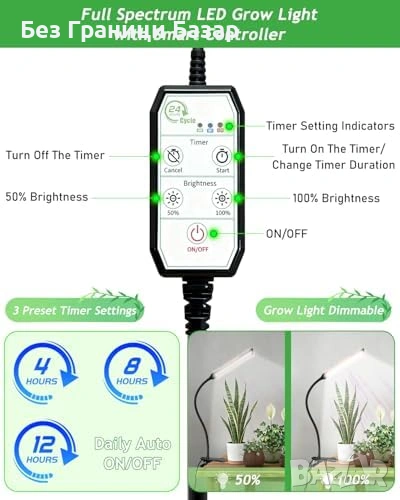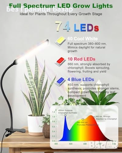 Нова Лампа за растения LED пълен спектър 74 диода таймер 4/8/12H стая
