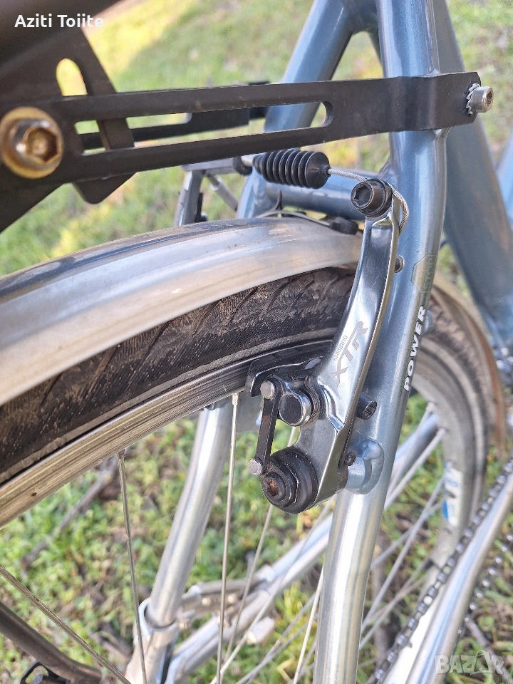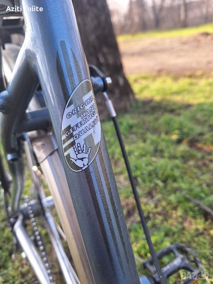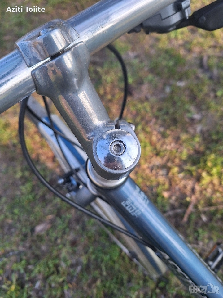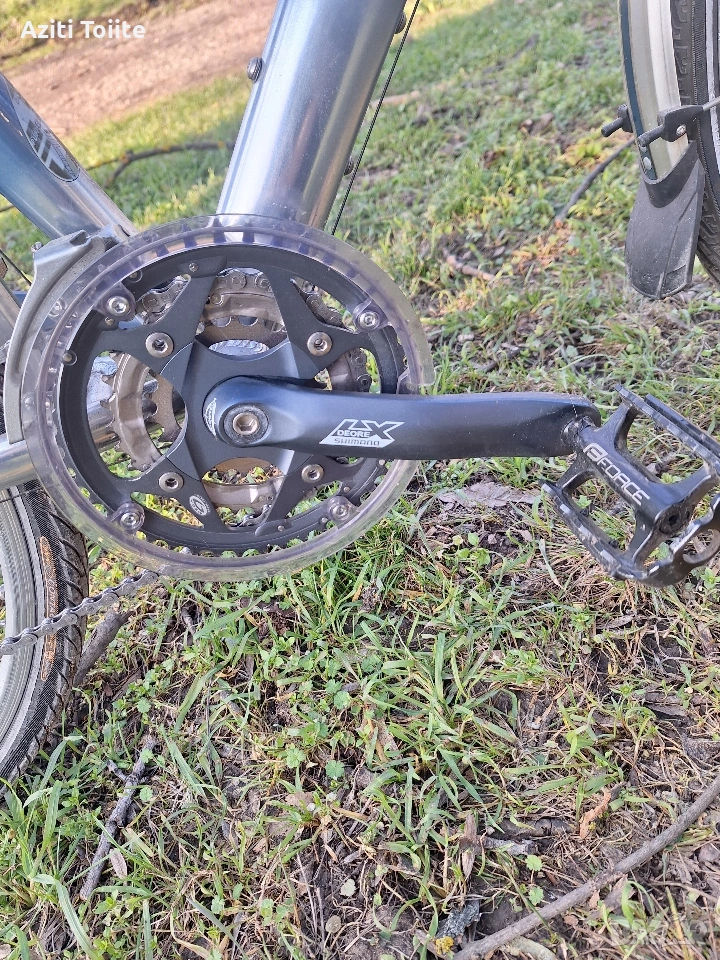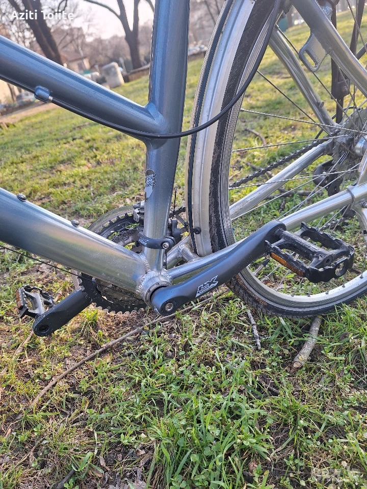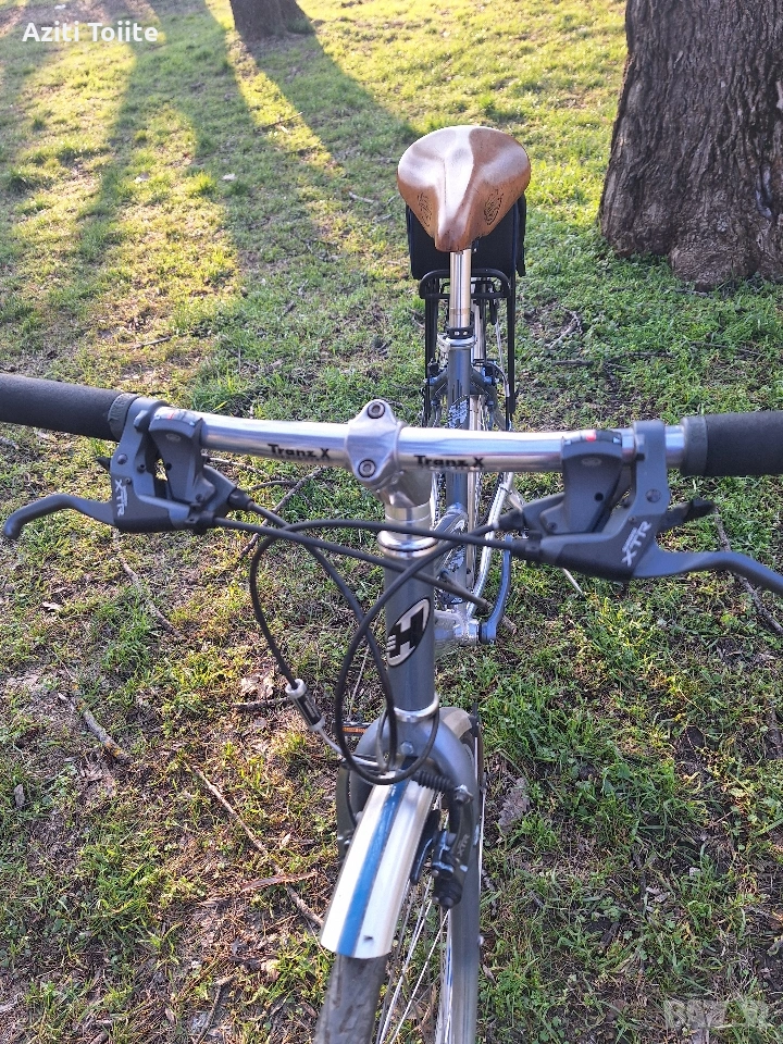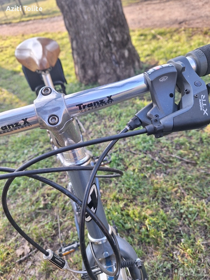 Накратко алуминиева рамка,ръчна изработка, унисекс L размер с покритие не боя,а оксидация в цвят.Компонентите по рамката са tranz X.Курбелите са deore LX holotech и octaling.Целият останал монтаж е XTR 950, включително и главините на каплите.Състоянието на велосипеда е перфектно и близко до ново.