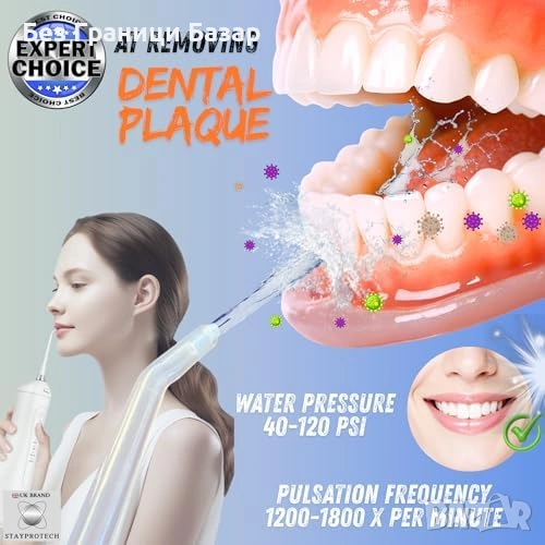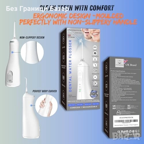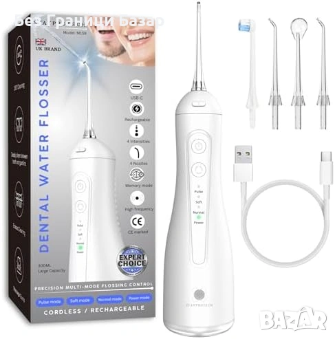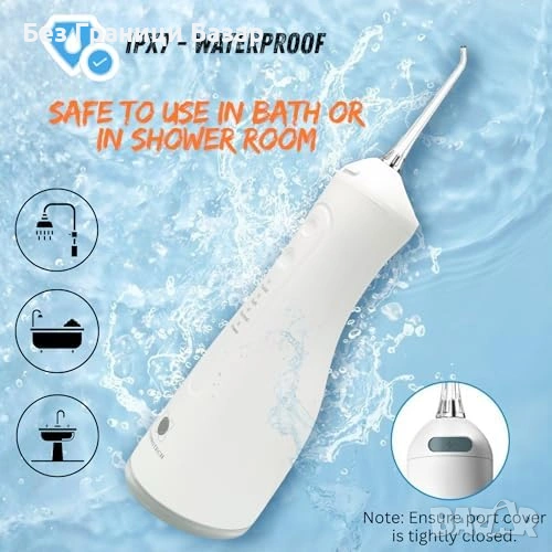 Нов воден душ флосер Безжичен ирригатор за зъби 300ml, 4 режима, 4 накрайника