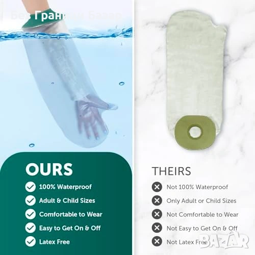 Водоустойчив протектор за ръка за душ и къпане – предпазва превръзки, шини и гипс от намокряне