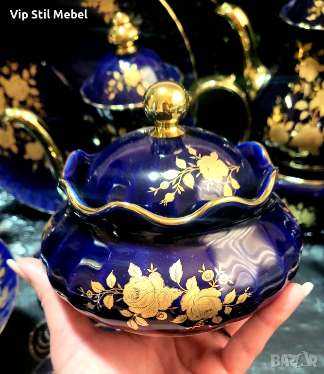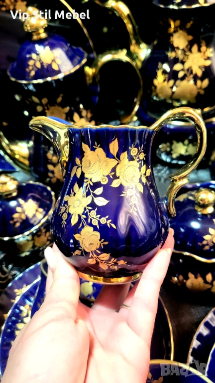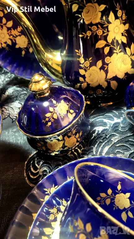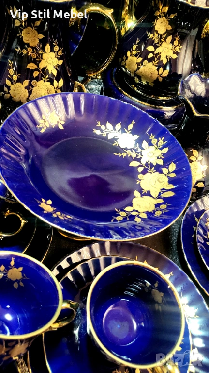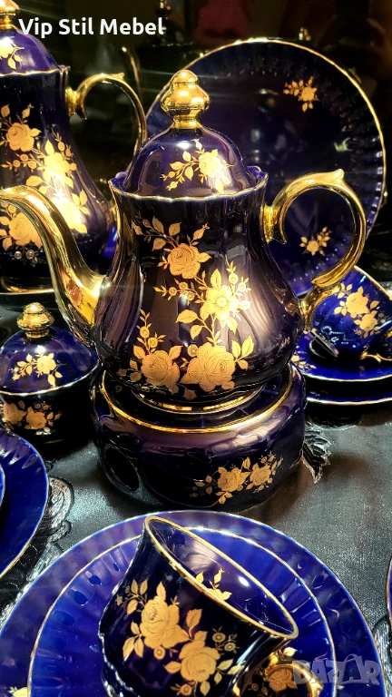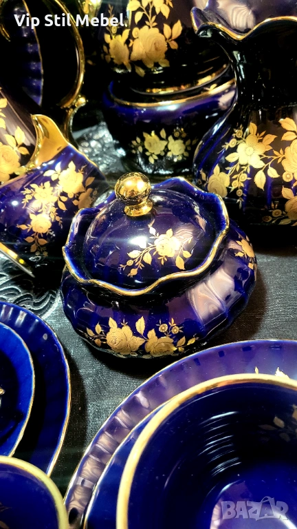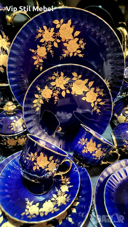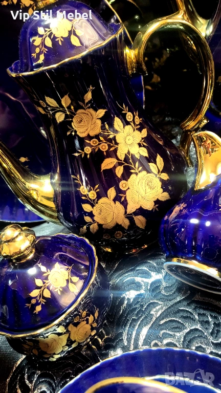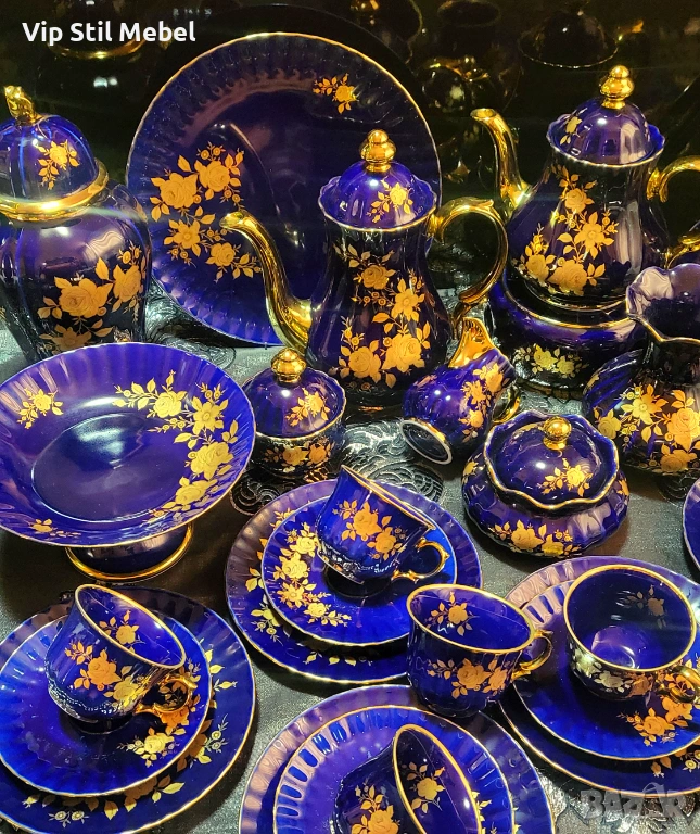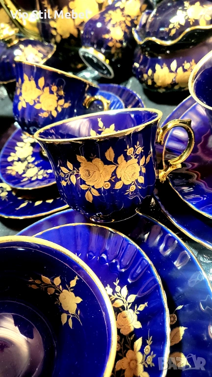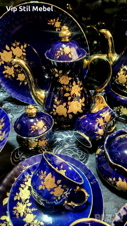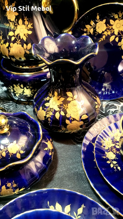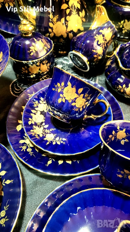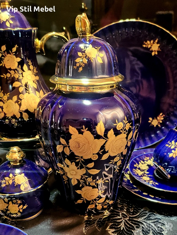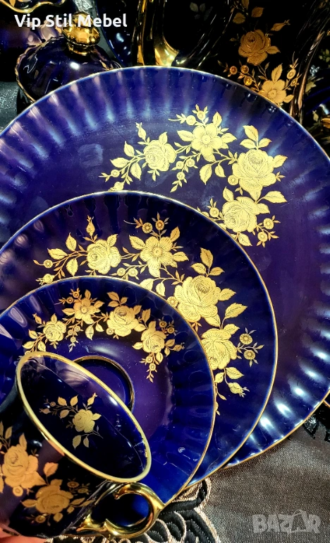 Сервиз в кобалтово синьо и с 22 карата позлата и