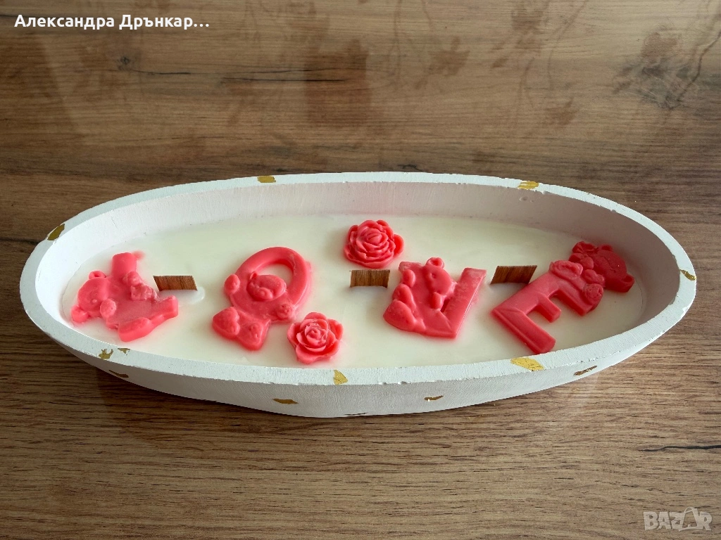 Ръчно изработена соева свещ LOVE → Обява 53695894
