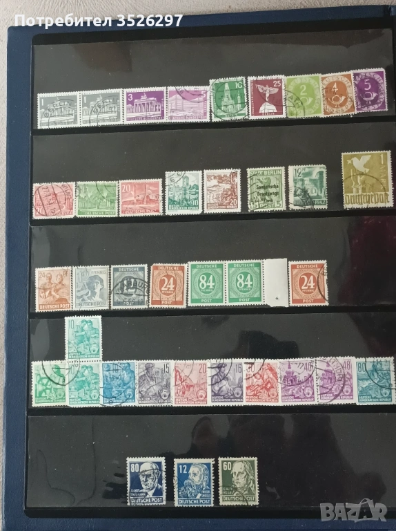 40 пощенски марки от Германия от периода след Втората световна война. Марките са с печати и са тези от снимките за 6 евро.