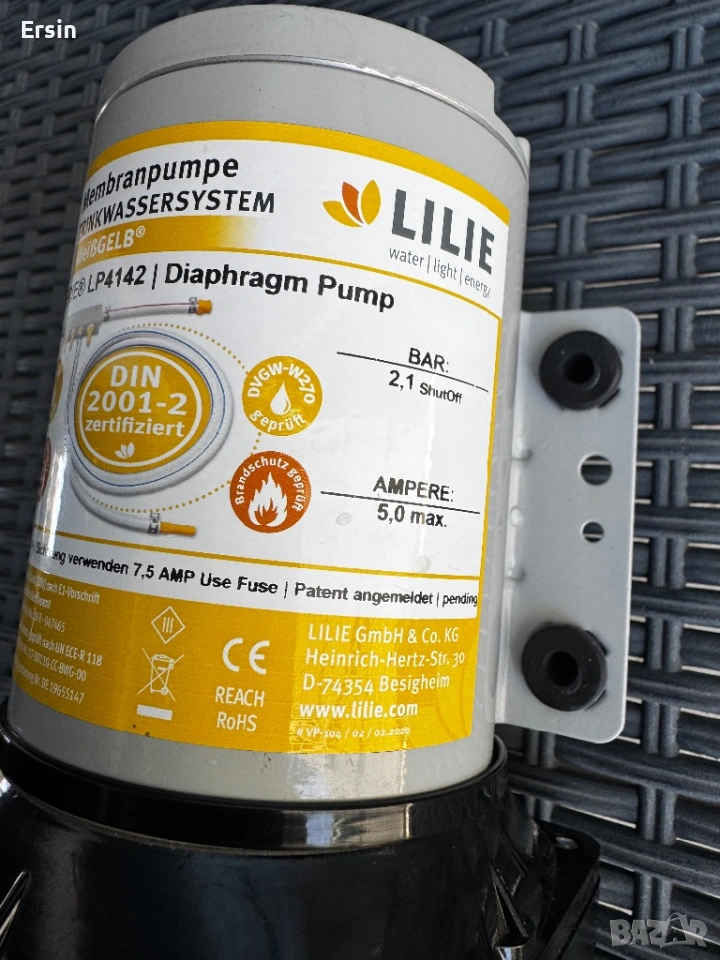 Хидрофорна помпа 2.1 bar , 11.3Л/мин. 12V ,5,0 A max LILIE SOFTSERIE → Обява 53696027