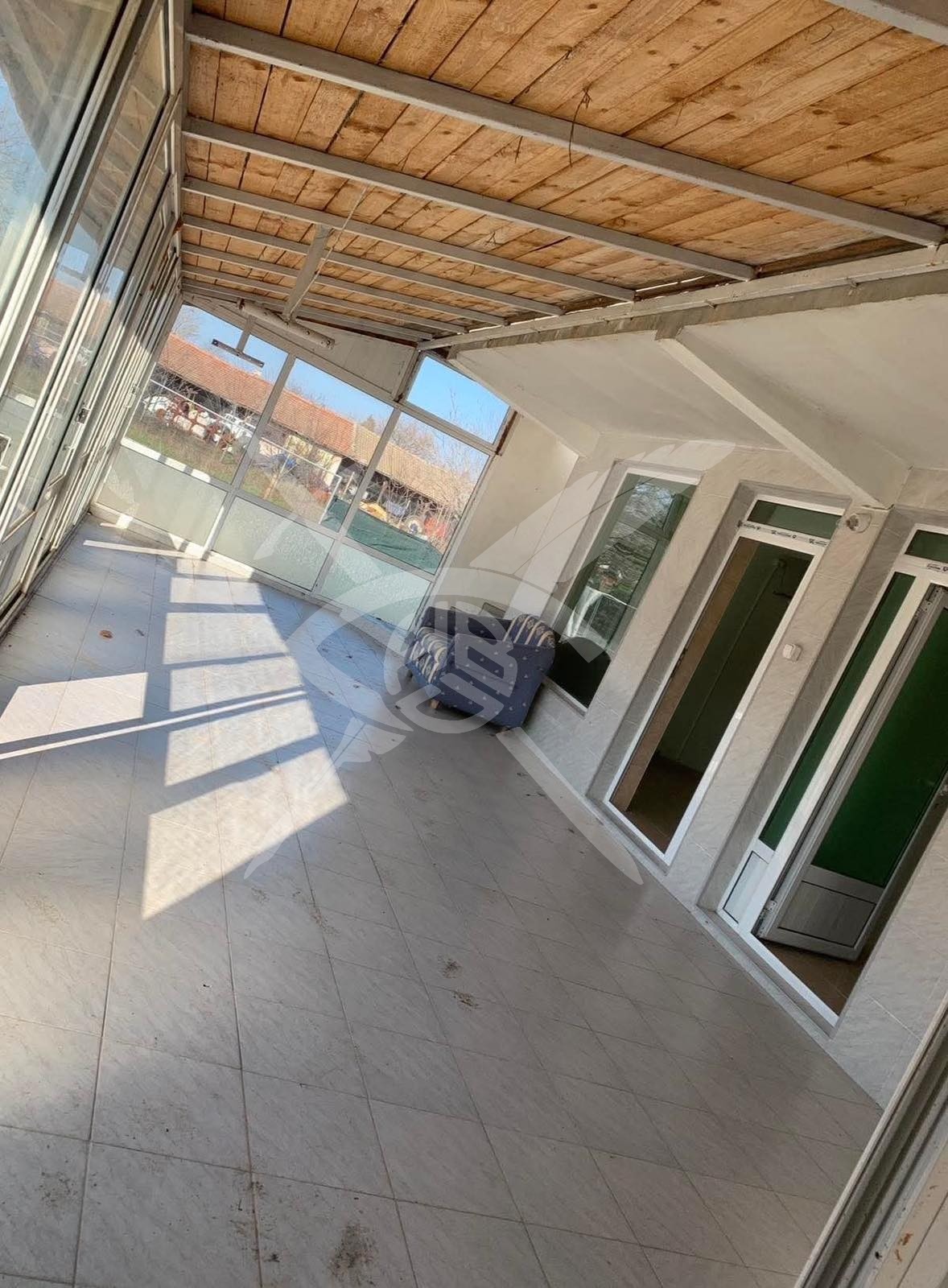 РАПРЕДЕЛЕНИЕ: Предлагаме двуетажна къща с площ от 150 кв.м. С функционално разпределение на първи етаж две спални, всекидневна с кухненски бокс, баня с тоалетна и покрита веранда, на втори етаж се състои от спалня и тераса. Къщата е разположена в двор с площ от 800 кв.м.