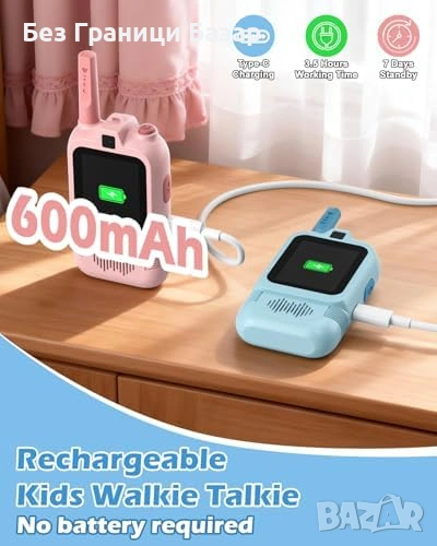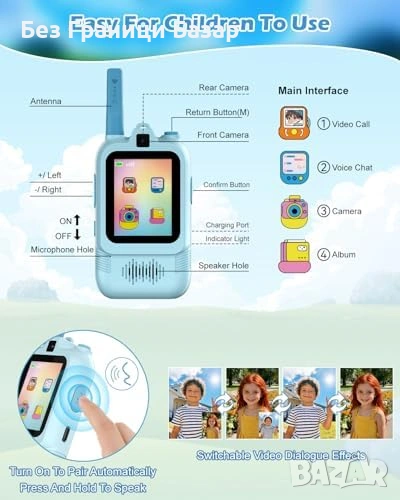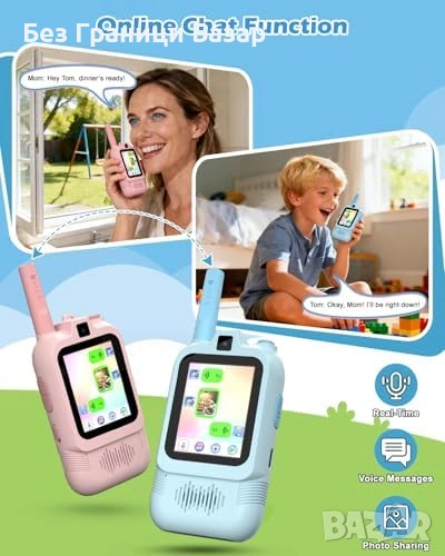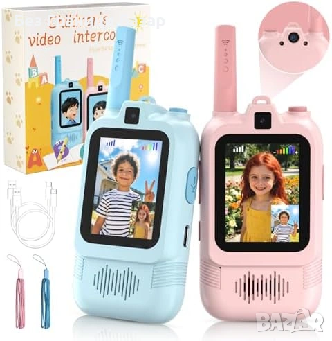 Ново Уоки-токи с видео за деца, 1900ft обхват, удароустойчиви, синьо/розово