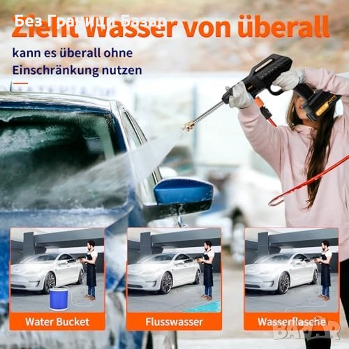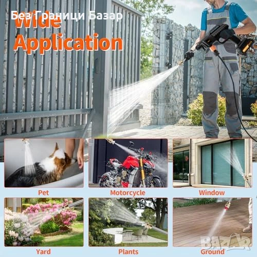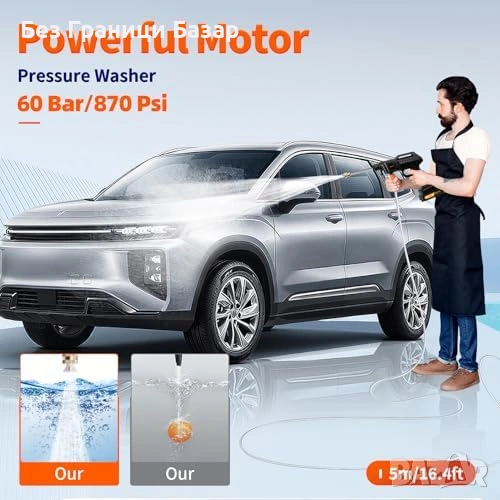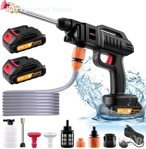 Нова Акумулаторна водоструйка 21V 1500W 60 bar + 2 батерии за чистене