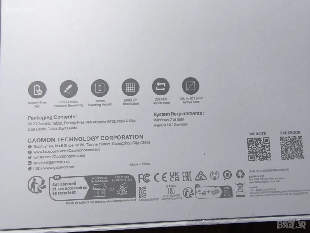 Чисто нов запечатан графичен таблет GAOMON S620 – 8192 нива на натиск (за рисуване, OSU, уроци...