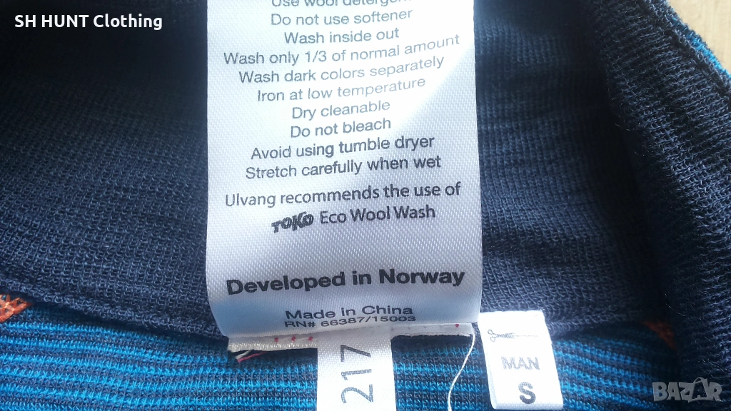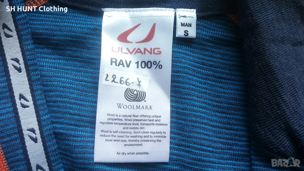 Марка: ULVANG THERMO UNDERWEAR 100% Merino Wool - термо блуза 100% Мерино вълна L266-7 Размер: S - ширина под мишниците 45 см , разтяга се до 64 см , дължина 82 см заедно с яката , 77 см без яката.