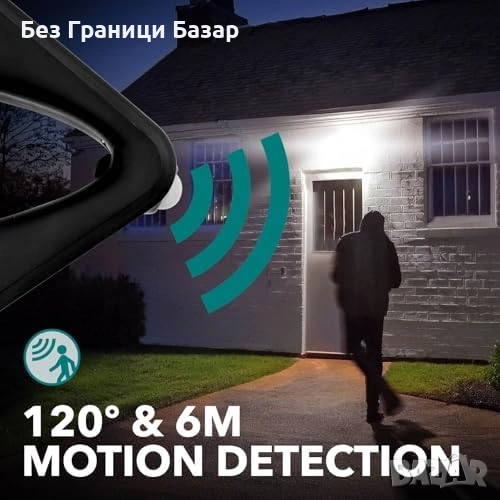 Соларна LED лампа с PIR датчик за движение за външно осветление и охрана