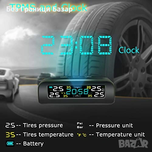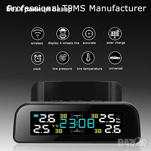 Комплект с соларен LCD монитор и 4 външни сензора за гуми