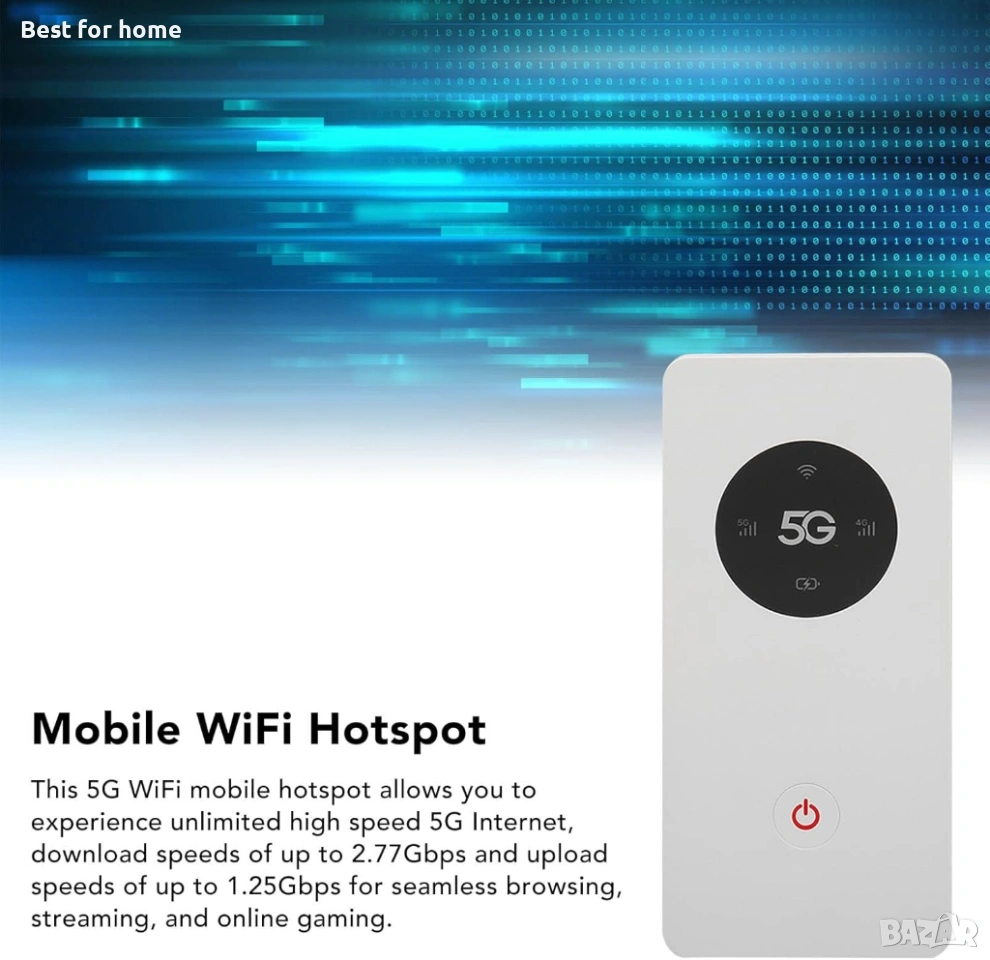 Ултра бърза 5G точка за достъп: Тази 5G мобилна точка за достъп ви позволява да се насладите на неограничен високоскоростен 5G интернет, скорости на изтегляне до 2.77Gbps и скорости на качване до 1.25Gbps за безпроблемно сърфиране, стрийминг и онлайн игри.