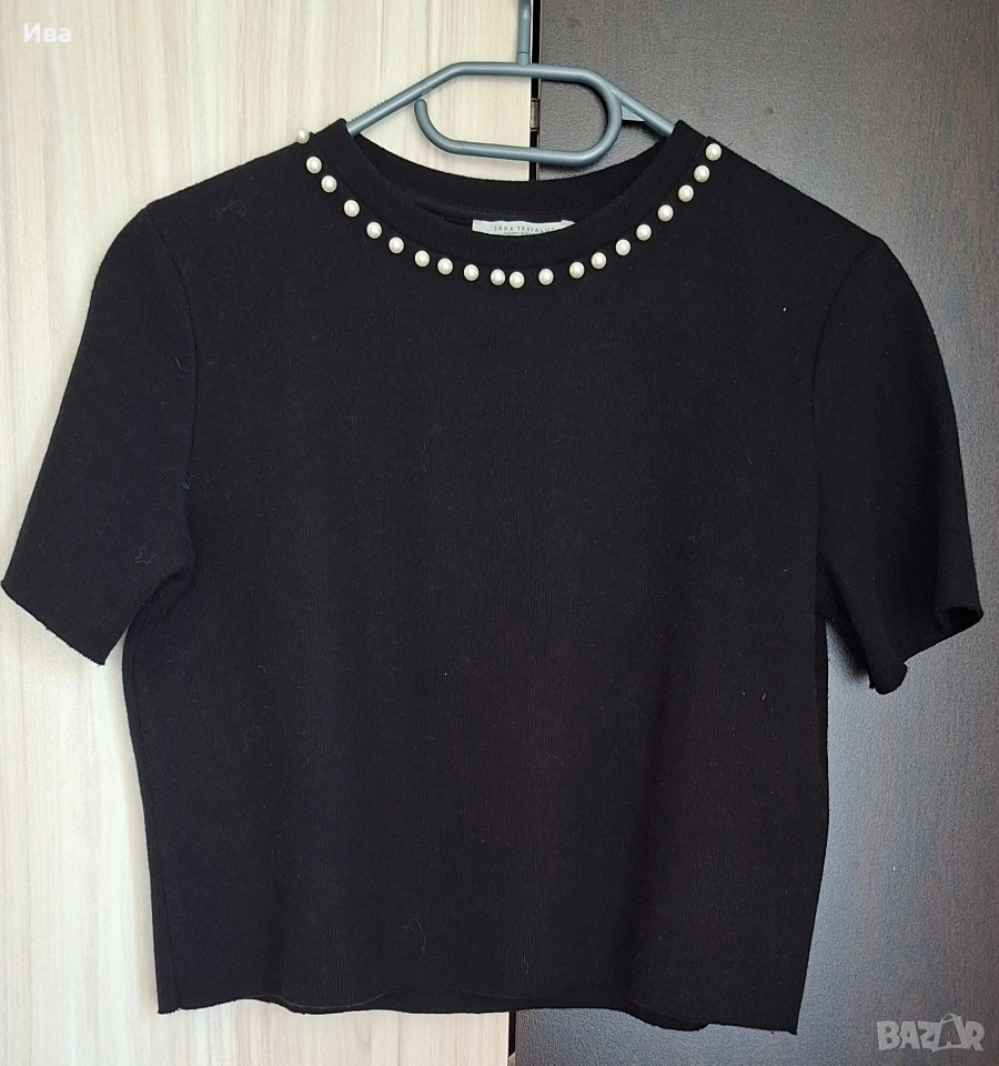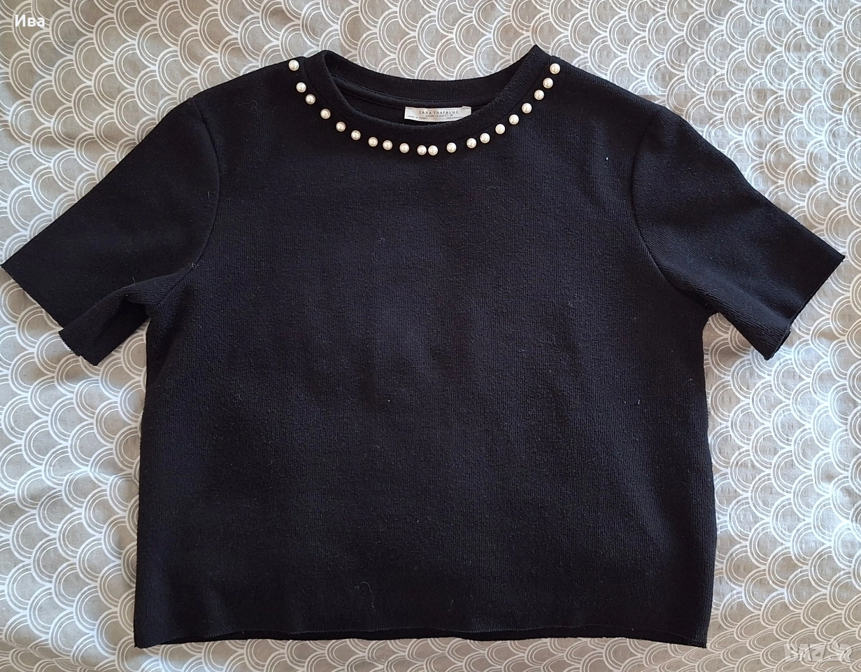 Топ с къс ръкав от Zara в отлично състояние. Стилен и удобен, от много мека и плътна материя. Памук и полиестер. Размер S