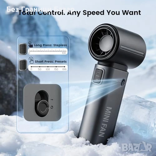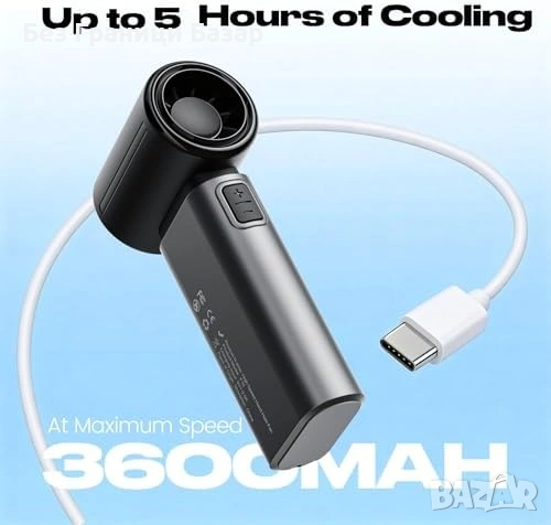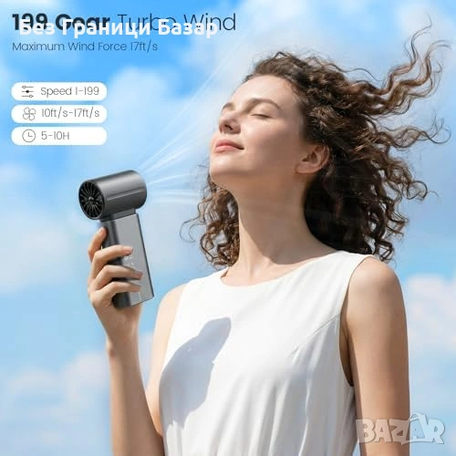 Нов мини Портативен турбо вентилатор 5.3 m/s, 0–199 контрол, нисък шум