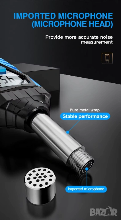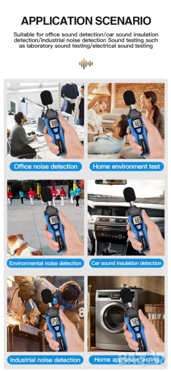 Обхват на измерване на звуково налягане: 30 ~ 130 dB ±2.0 dB