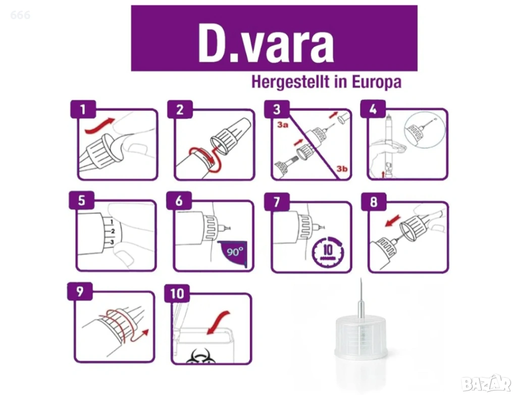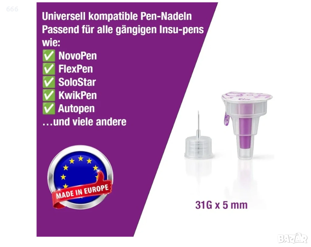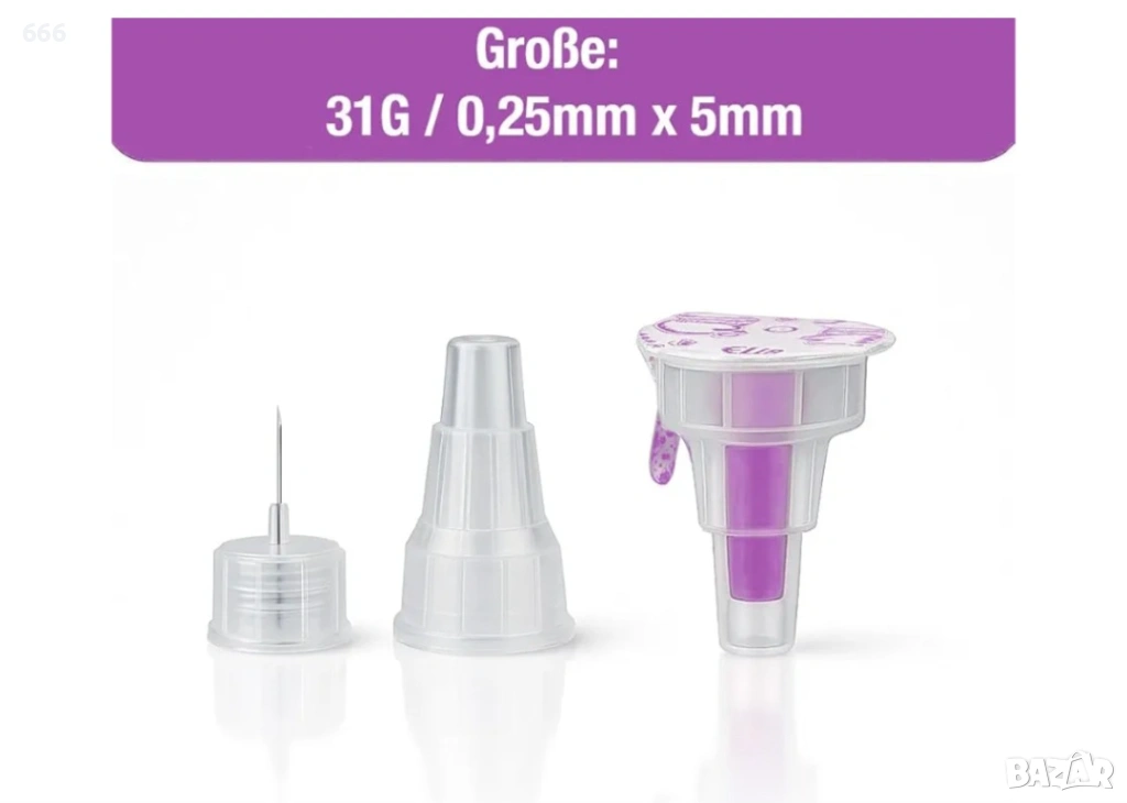 Размер: Тънки игли 31G с дължина 5 мм, предназначени за подкожно инжектиране.