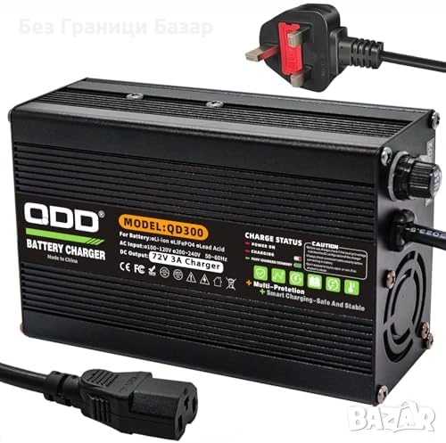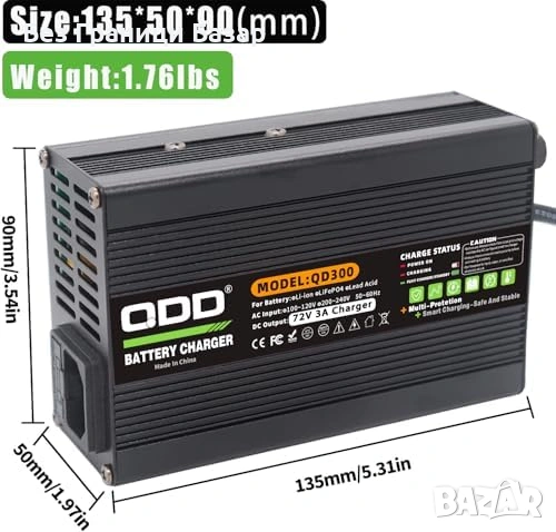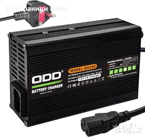 Изход: 72V / 3A – подходящо за 15Ah, 20Ah, 25Ah, 30Ah