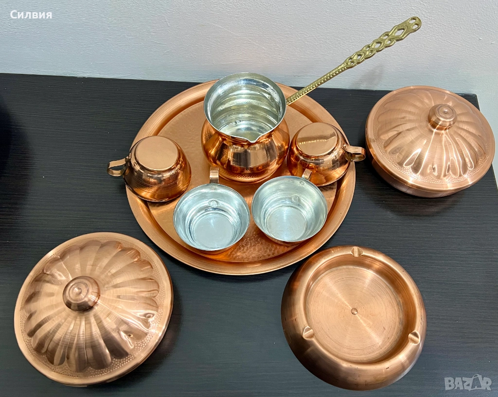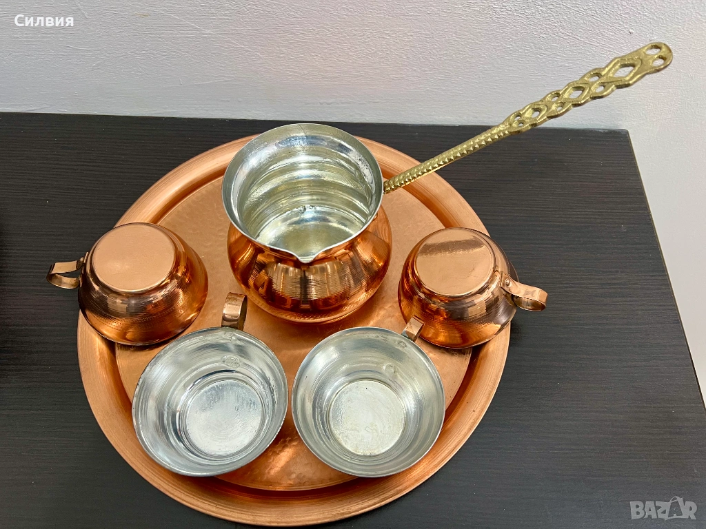Сервиз за кафе. Състои се от поднос, джезве и 4 чаши . Цена 55 евро.