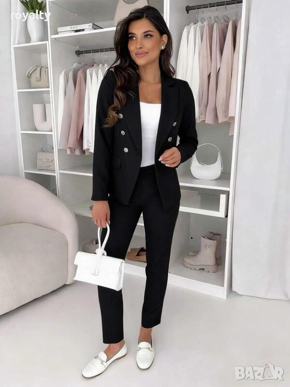 Дамски Черен Елегантен Костюм с Копчета → Обява 53698424