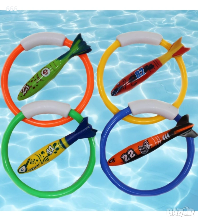 Забавление: играчки за басейн, пръстени за гмуркане и бандити