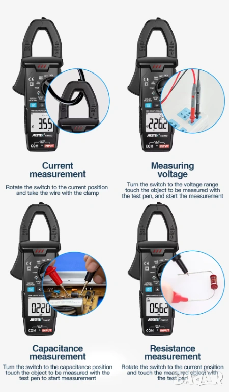 Тип устройство: Цифров амперметър (Clamp Meter) с температура