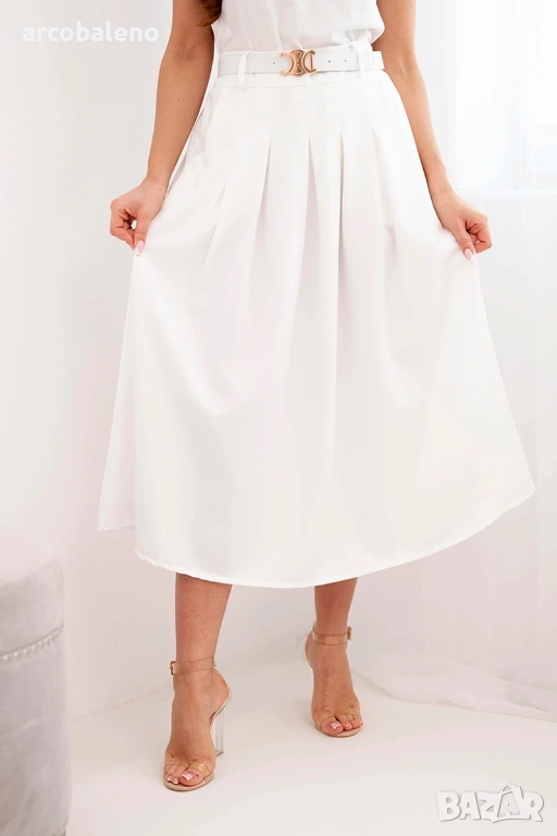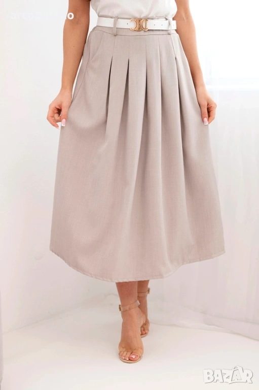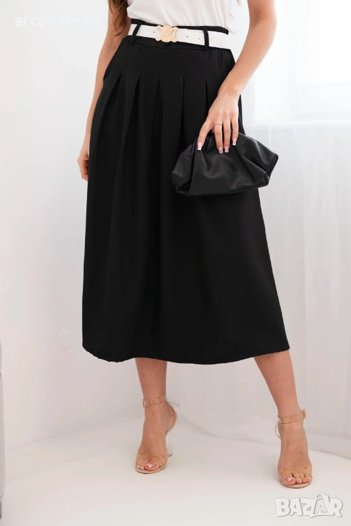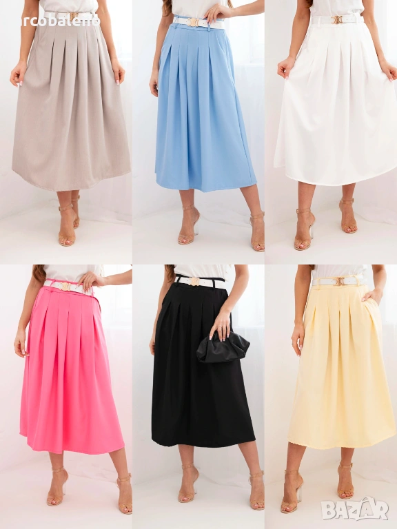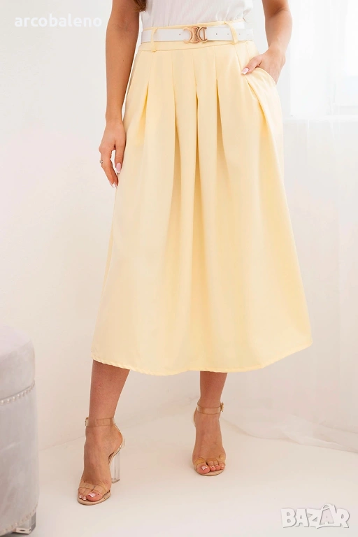 Дамска вискозна пола с колан и плисета, 7цвята