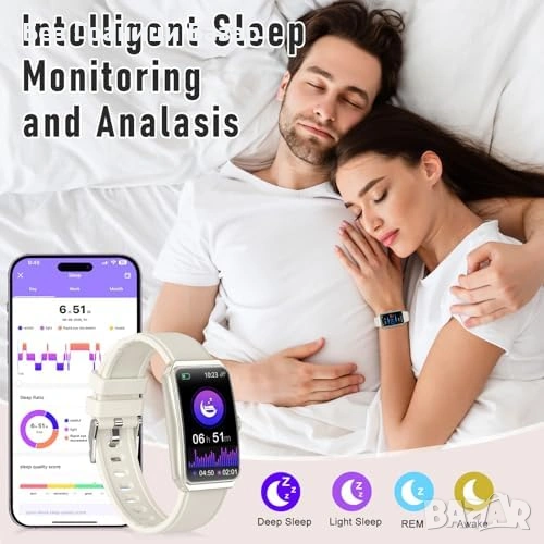 24/7 мониторинг: пулс, кръвно налягане, SpO₂, сън + температурен мониторинг