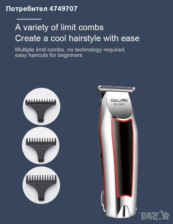 Комплектът включва 3 приставки, които ви дават свобода да избирате желаната дължина и да оформяте прическата или брадата си с лекота. Подходяща както за цялостно подстригване, така и за детайли и контури.