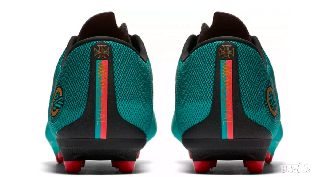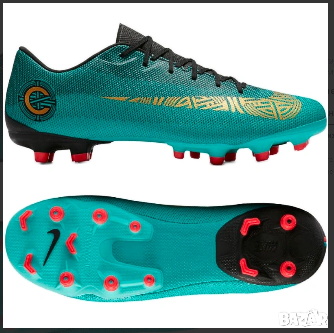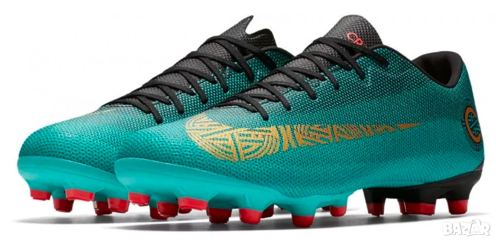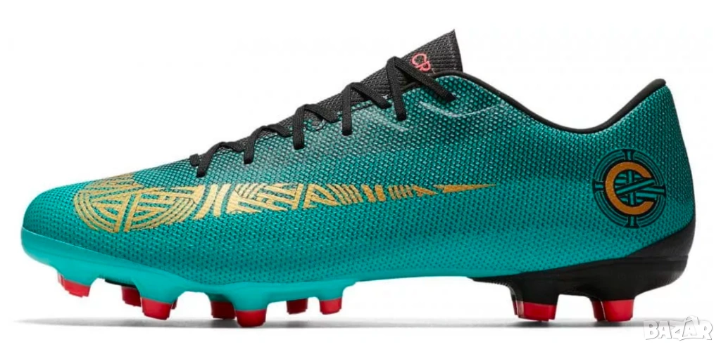 Nike Mercurial Vapor 12 Academy CR7 FG/MG от серията "The Pride of Portugal" (Гордостта на Португалия). Този модел е част от специалната колекция на Кристиано Роналдо (CR7) и е предназначен за игра както на естествена трева (FG), така и на изкуствени настилки (MG).