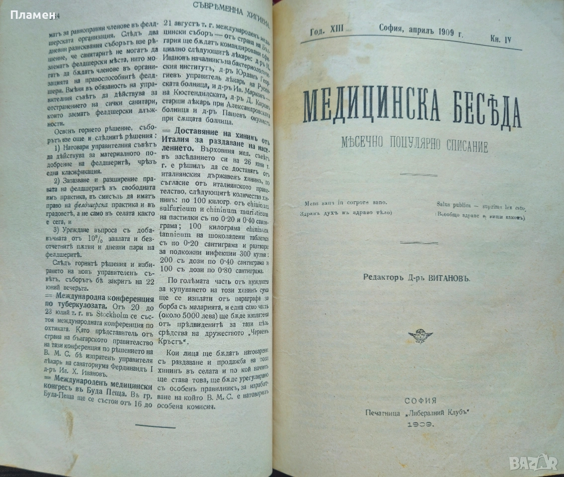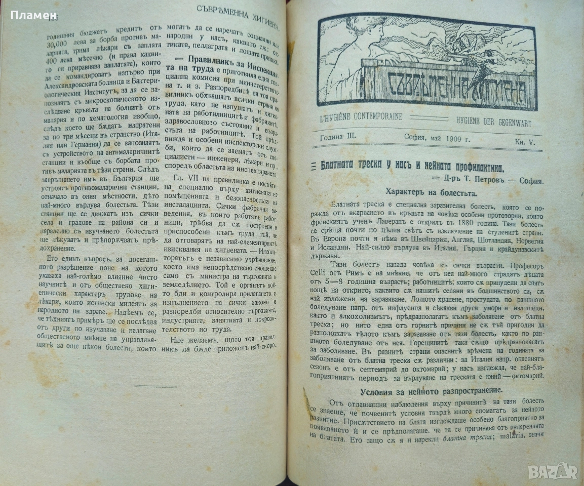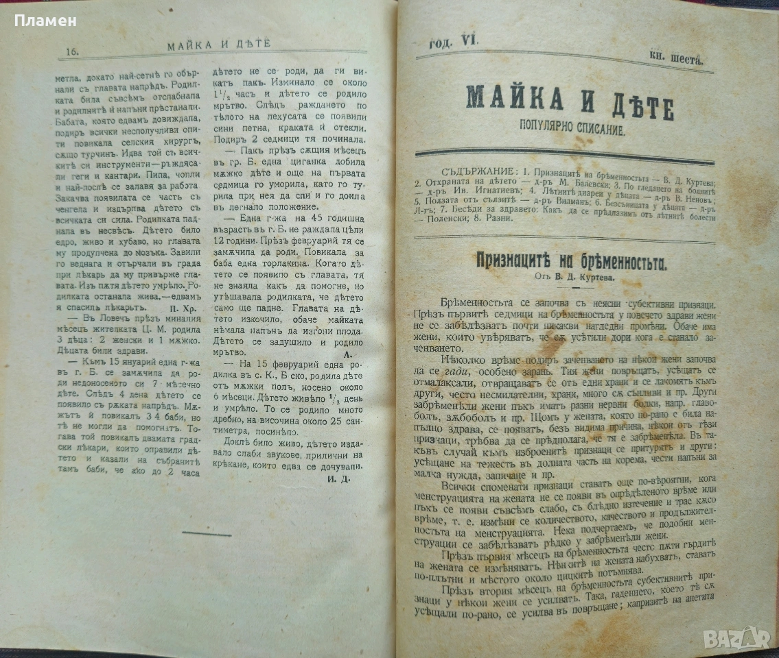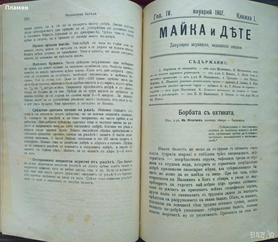 Съвременна хигиена. Кн. 1-5, 7 / 1909; Майка и дете. Кн. 8 / 1905, Медицинска беседа → Обява 53698882
