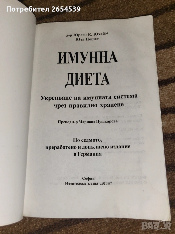 Имунна диета - Юрген К. Юхайм, Юта Пошет → Обява 53699044