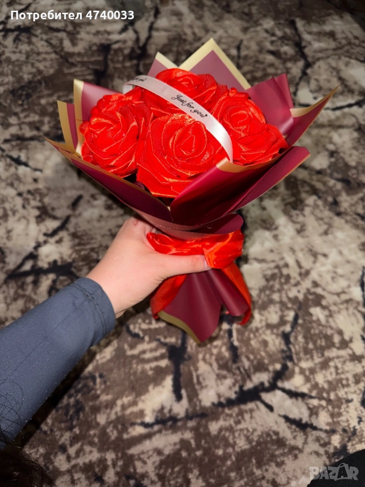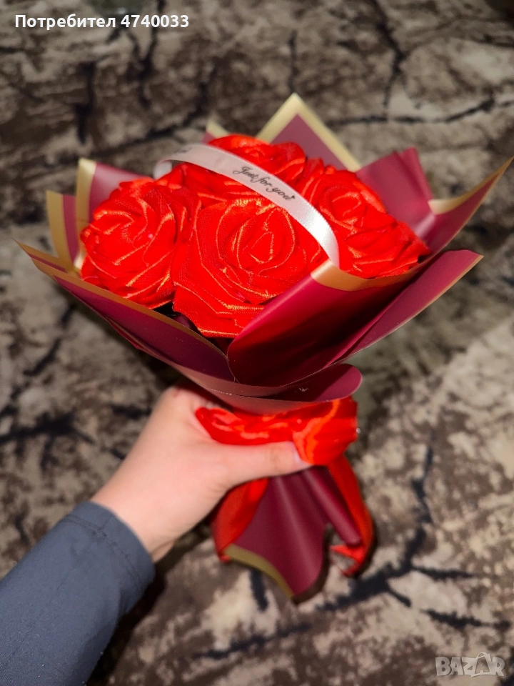 Намаление ! Вечен букет от сатенени рози с луксозна опаковка само за 10€ → Обява 53699154
