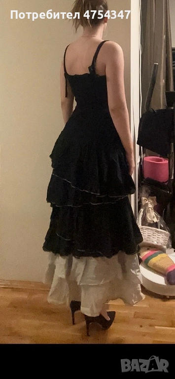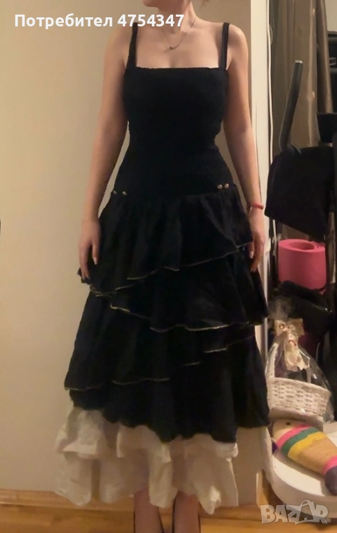 Дизайнерска черна дълга винтидж рокля със златни нишки → Обява 53699168