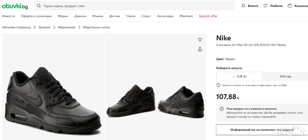 Усещане: Според потребители на Farfetch, моделът Air Max 90 е по-тесен и се препоръчва вземането на половин номер по-голям размер, ако имате по-широко стъпало.
