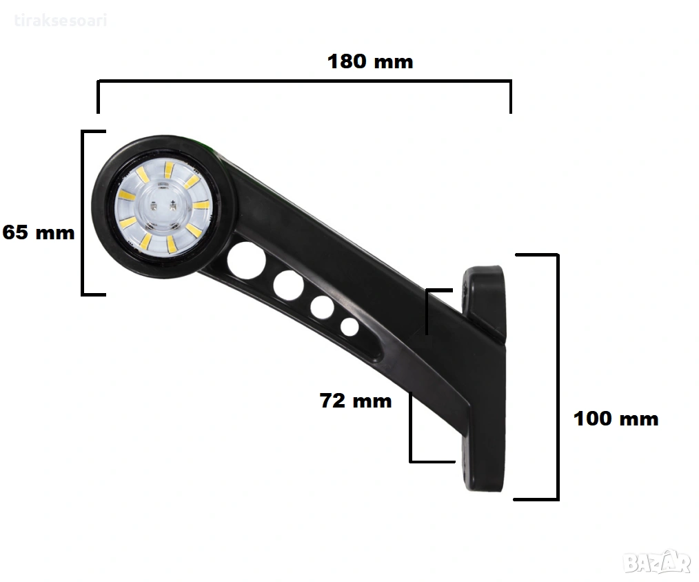 led рогчета 180мм, въртящи габарити 12v 24v, ротационни габарити камион, габарити за ремарке, led рогчета бяло червено, странични маркери с ефект, рогчета 180 мм