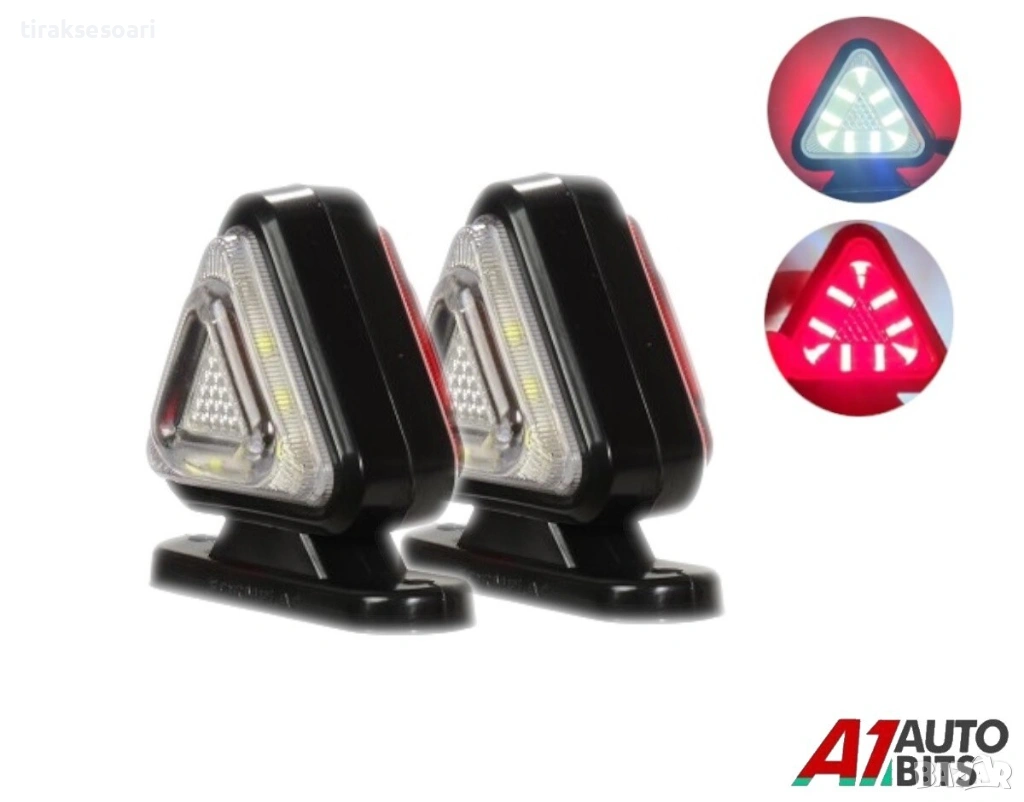 Комплект 2 бр. 18 LED мини габарити тип рогче – Неон ефект 12V-24V бяло-червено, триъгълна форма