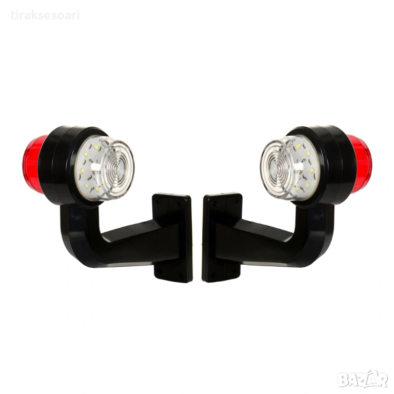 Комплект 2 бр. LED маркери рогчета 12V-24V бяло-червено – Странични габарити за камион и ремарке