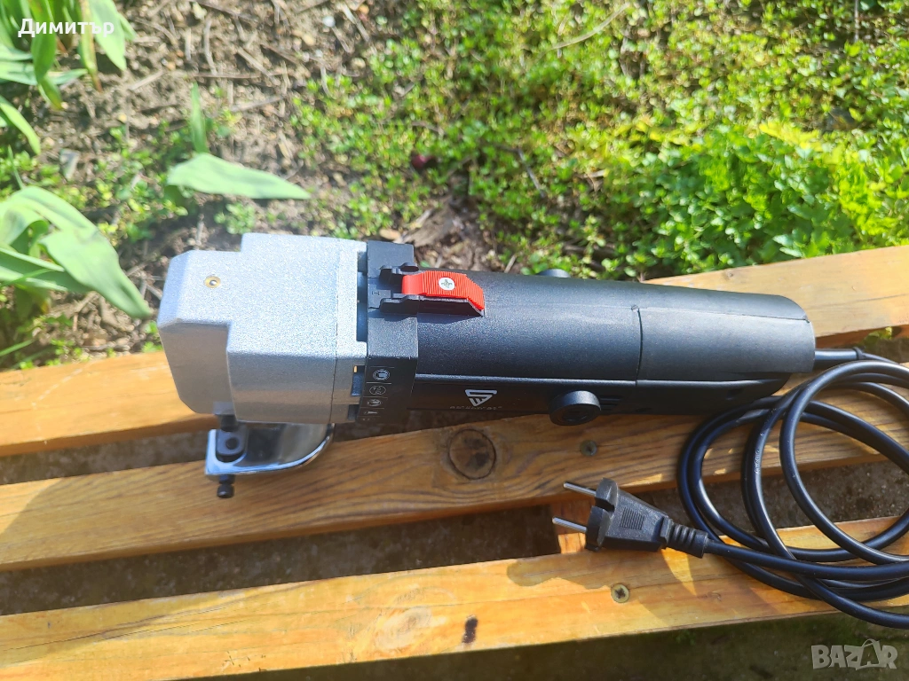 Електрическа ножица за ламарина в перфектно състояние, идентично на ново. Отлично състояние на режещите ножове. Работи без отклонения. Мощност 500 W, дебелина на материала 2.5 мм.