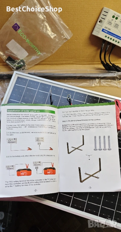 ECO-WORTHY 25W 12V монокристален соларен модул Комплект соларен панел: 25W соларен панел + регулируема скоба + SAE свързващ кабел + 10A контролер за зареждане за автомобил RV морска лодка