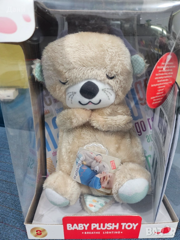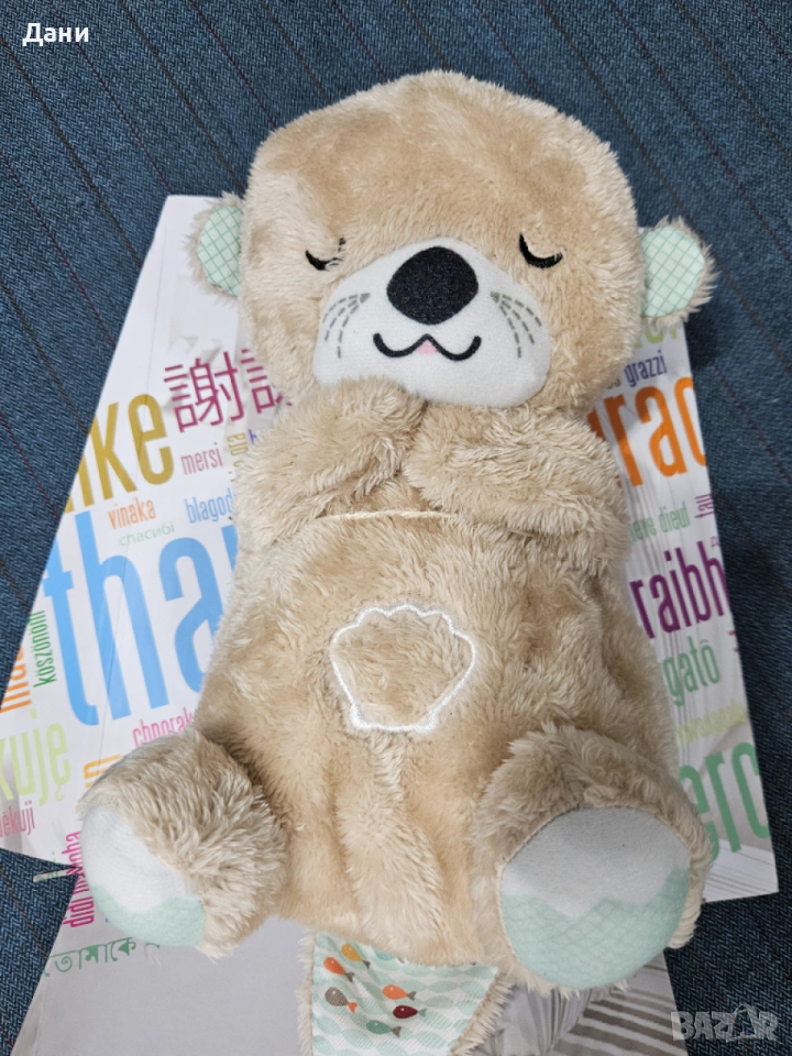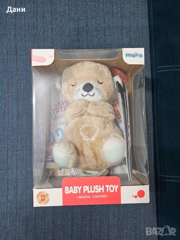 Чисто НОВА Дишаща плюшена играчка Chipolino / Чиполино - С музика и светлина, видра, бежова (Baby plush toy, breathe lighting)
